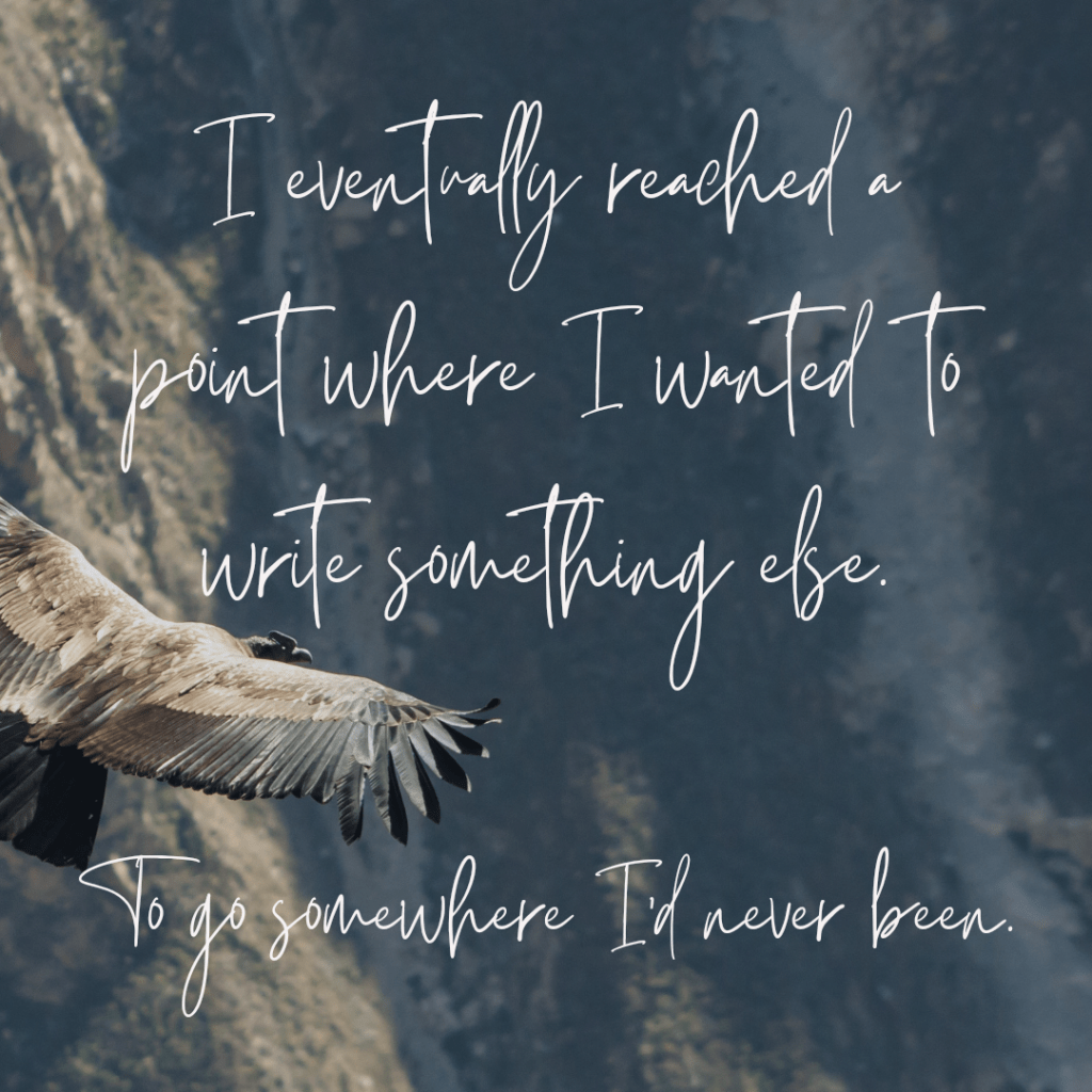 And after all that, I eventually reached a point where I wanted to write something else. To go somewhere I’d never been. Somewhere that researching made me want to go. You know?